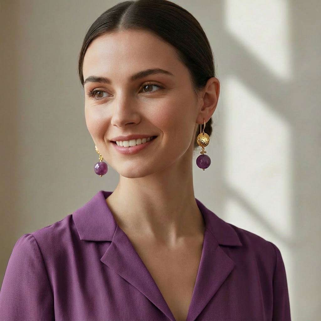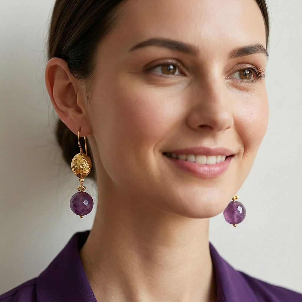 Özel kesim taşların ışıltısı ve antik altın kaplama dokunuşuyla bu küpe, hem günlük stilinize hem de özel davetlerinize zarif bir enerji katar.