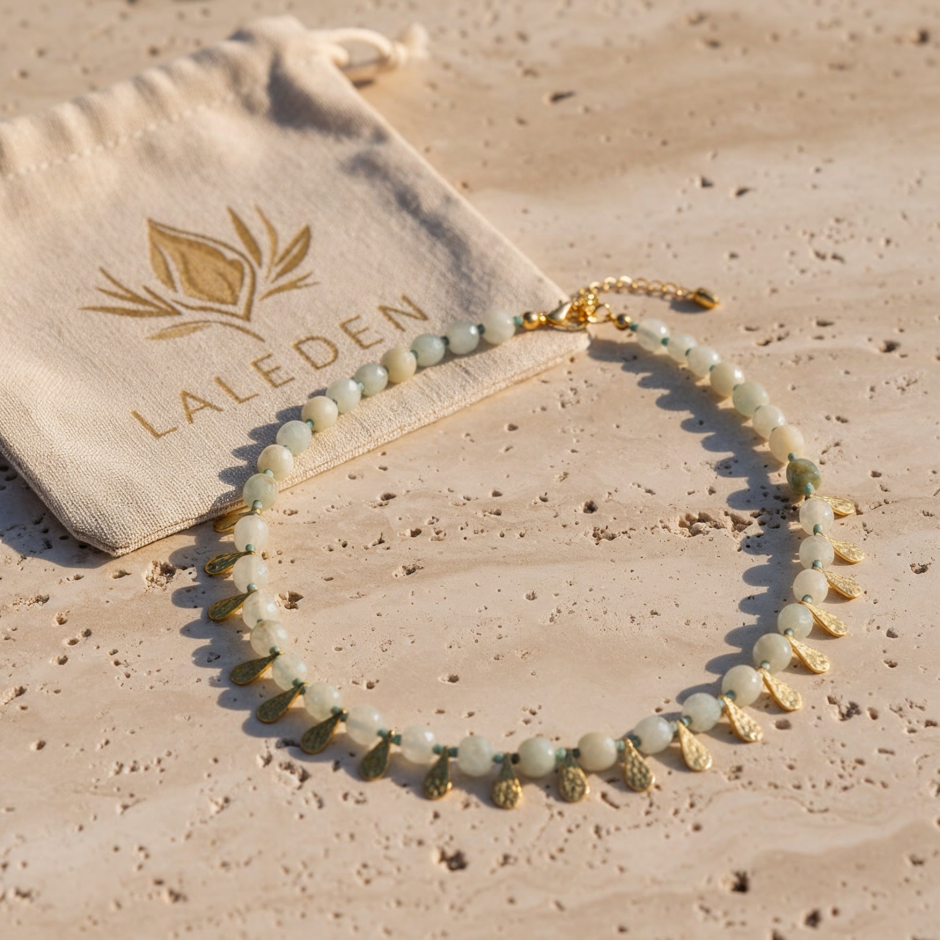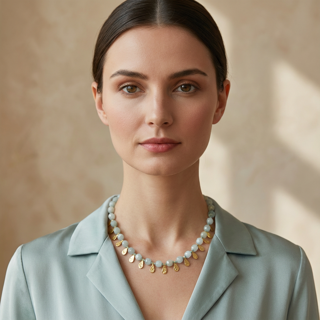 Her taş hafif farklı bir şeffaflık ve ton içerir; bu da her kolyeyi özel kılar.
