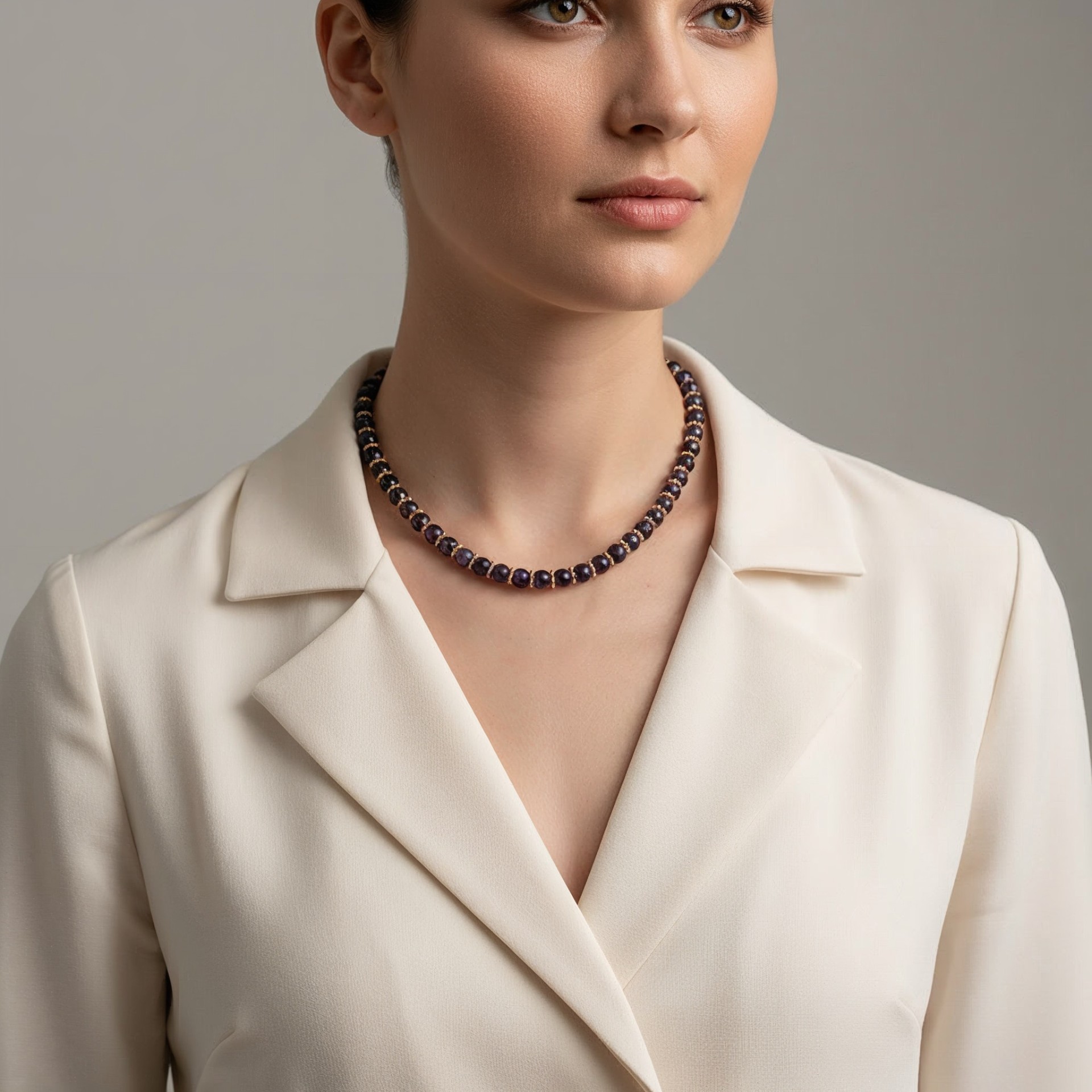 Her taşın tonu ve parlaklığı kendine özgüdür; bu da her kolyeyi eşsiz kılar.