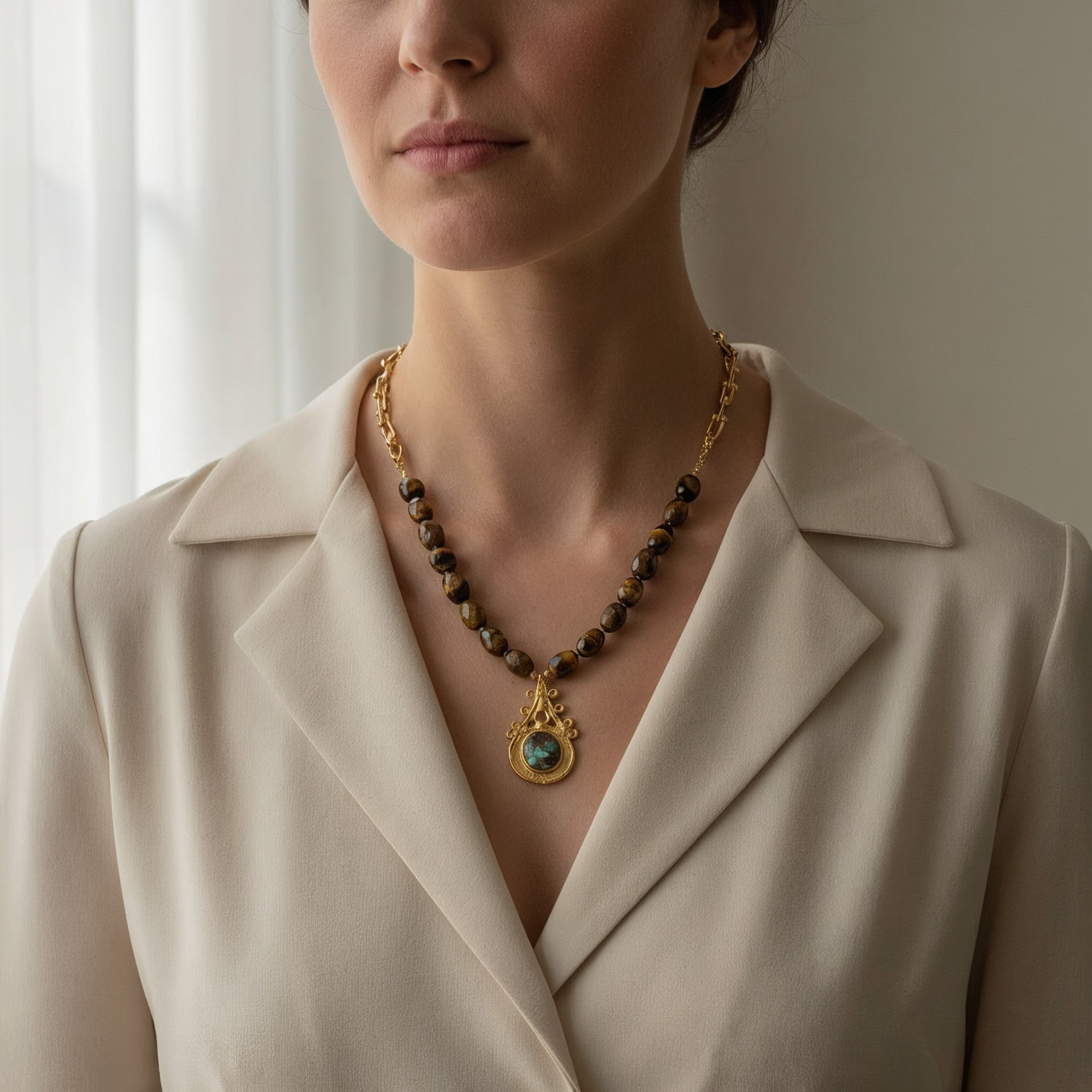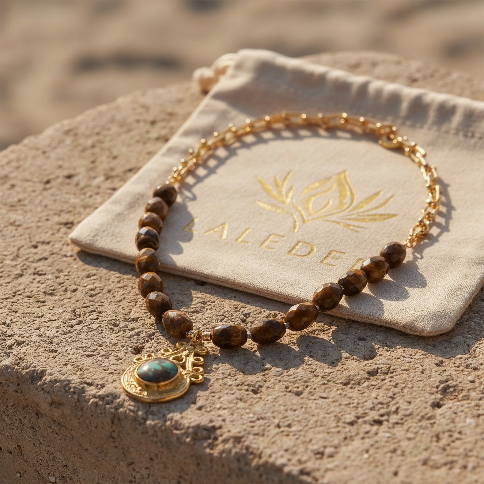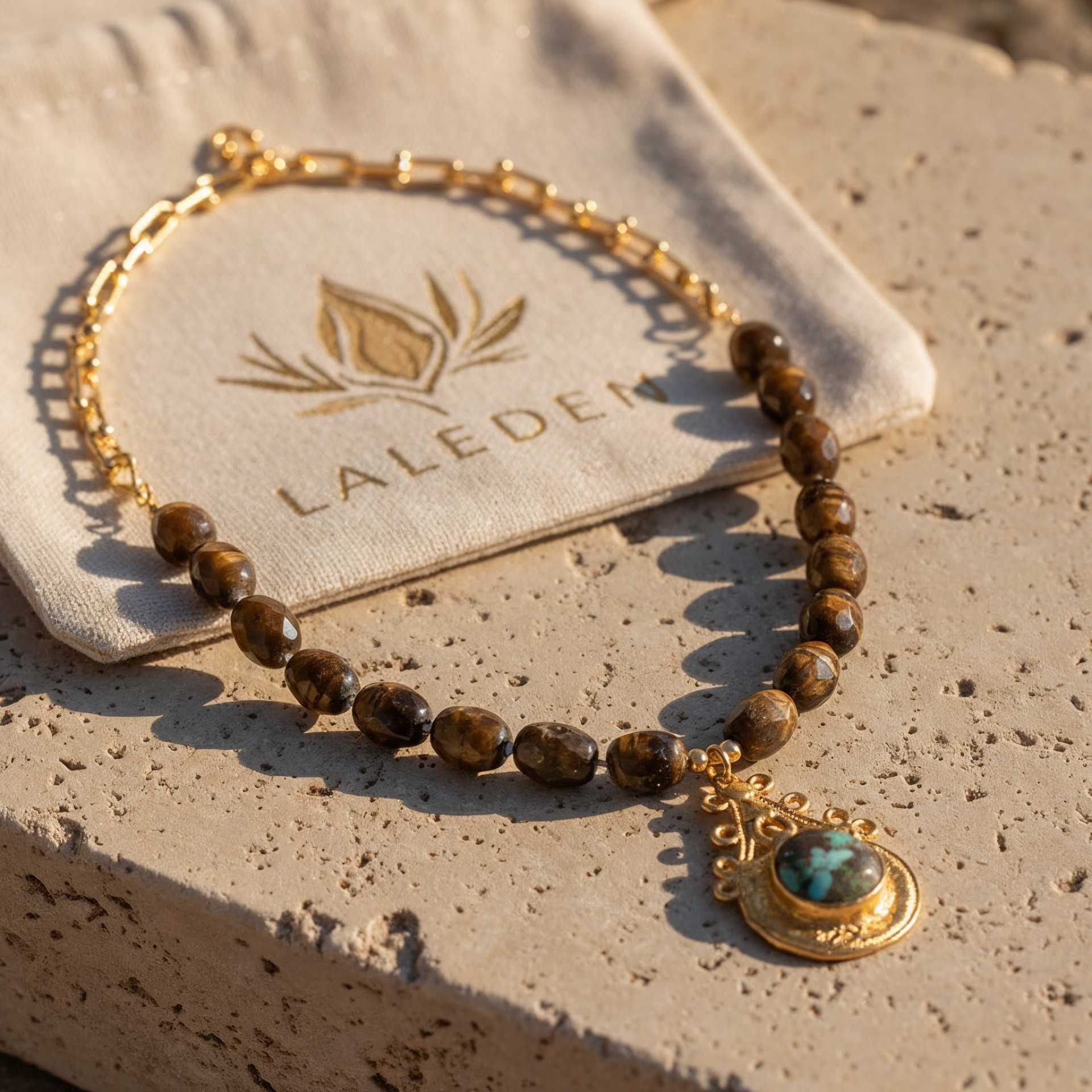 Kaplan Gözü & Turkuaz Osmanlı Uç Detaylı Kolye, Laleden’in Koruyucu Enerji & Zihinsel Netlik kategorisinde Majestic Premium seviyesinde yer alır.