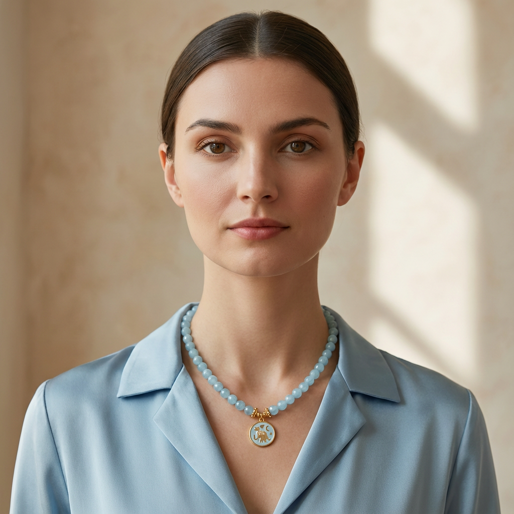 Mavi kuvarsın serin enerjisi şans ucu sembolüyle birleşerek yumuşak ve dengeli bir ruhsal alan sunar.