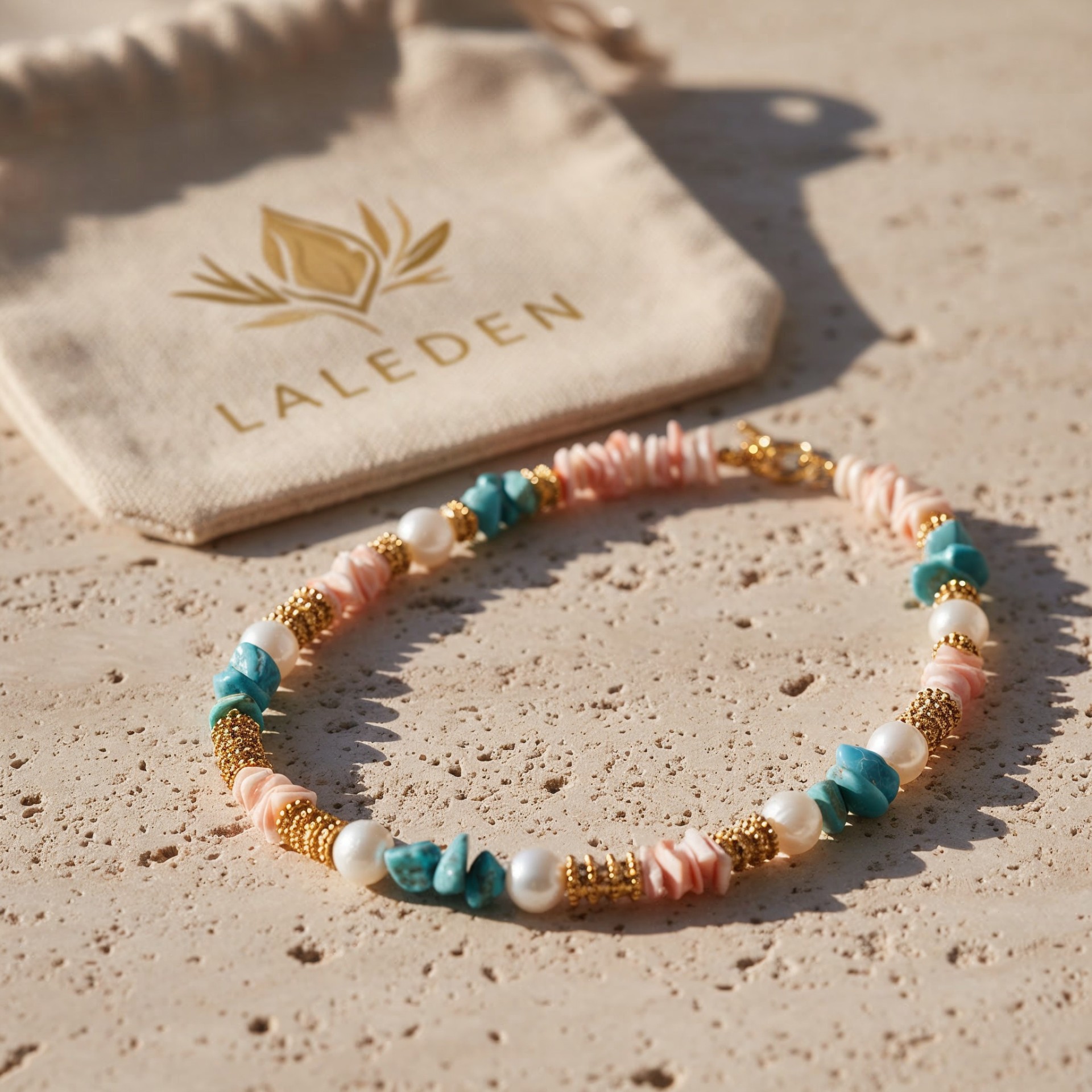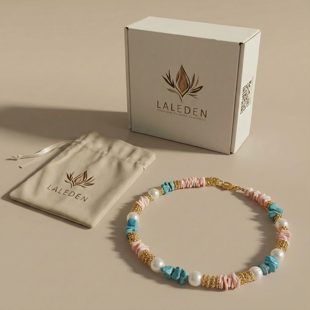 Sedefin sakinleştirici yapısı, turkuazın koruyucu enerjisi ve incinin yumuşak ışığı birleşerek hafif ama dengeli bir etki oluşturur.