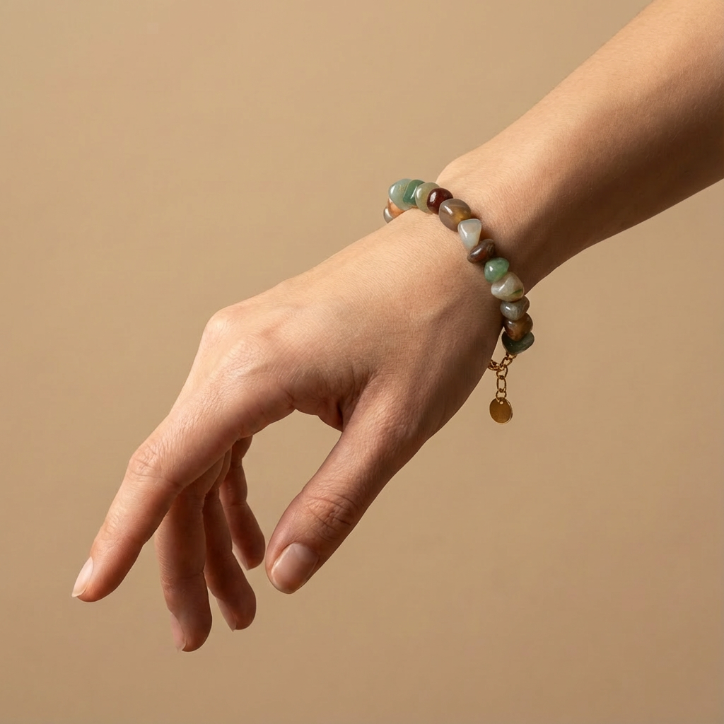 Günlük kullanım için ideal olan bu bileklik, enerjiyi yormadan dengeleyen ve doğallığı ön planda tutan bir tamamlayıcıdır.