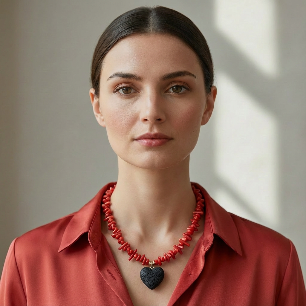 Gerçek Mercan & Lav Taşı Kalp Uçlu Kolye, Laleden’in Koruyucu Enerji & Topraklanma kategorisinde Ultra Premium seviyesinde yer alır.