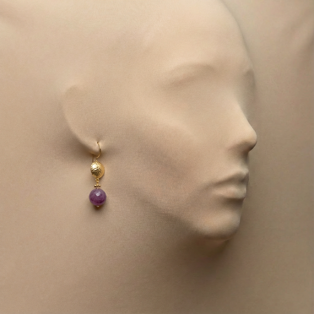 Yakut Antik Altın Kaplama Küpe – Tutkunun ve Gücün Sembolü