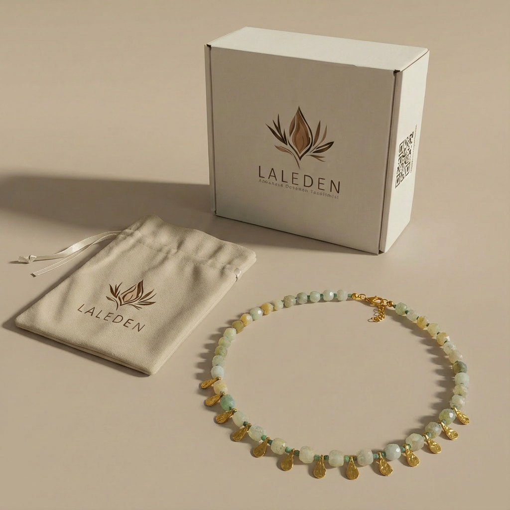 Her taş hafif farklı bir şeffaflık ve ton içerir; bu da her kolyeyi özel kılar.