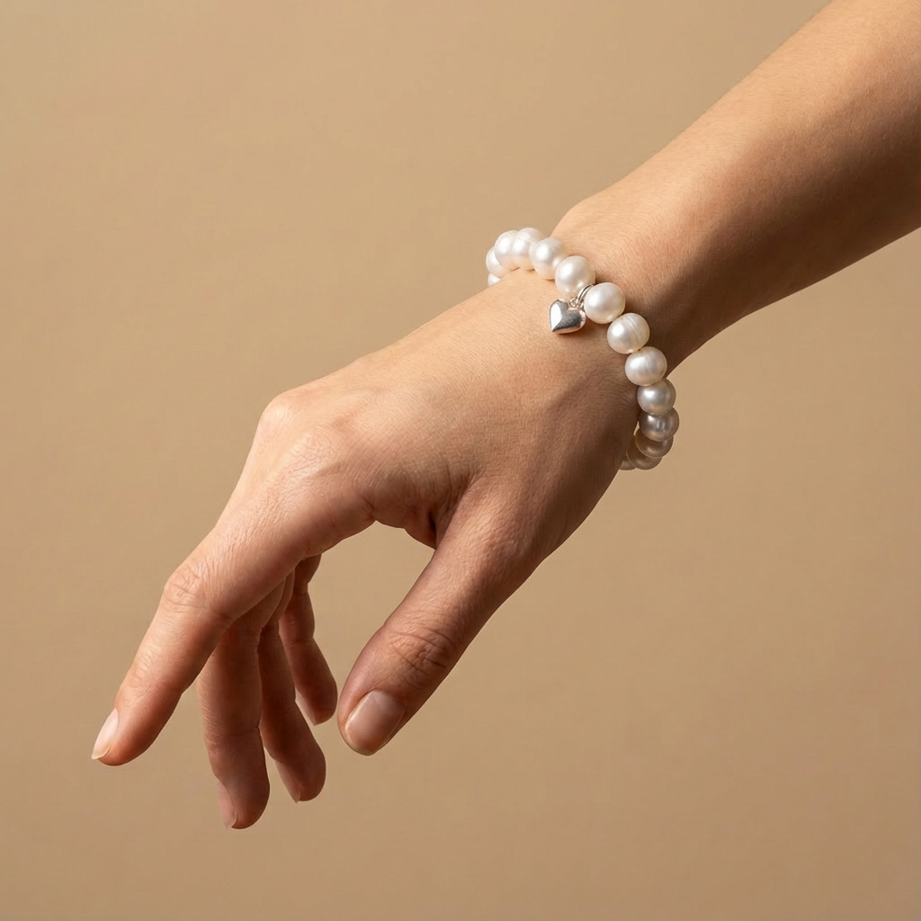 İnci, yumuşak enerjisiyle sakinlik hissi yaratırken, bilekte sade ama güçlü bir duruş oluşturur.