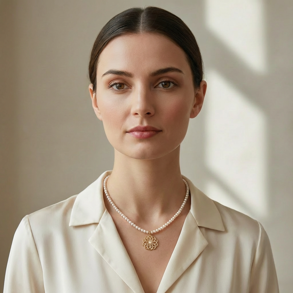 | Feminen enerji & zarafet | 57/100 | İnci ve altın detaylar zarif, feminen bir ışık oluşturur. |
