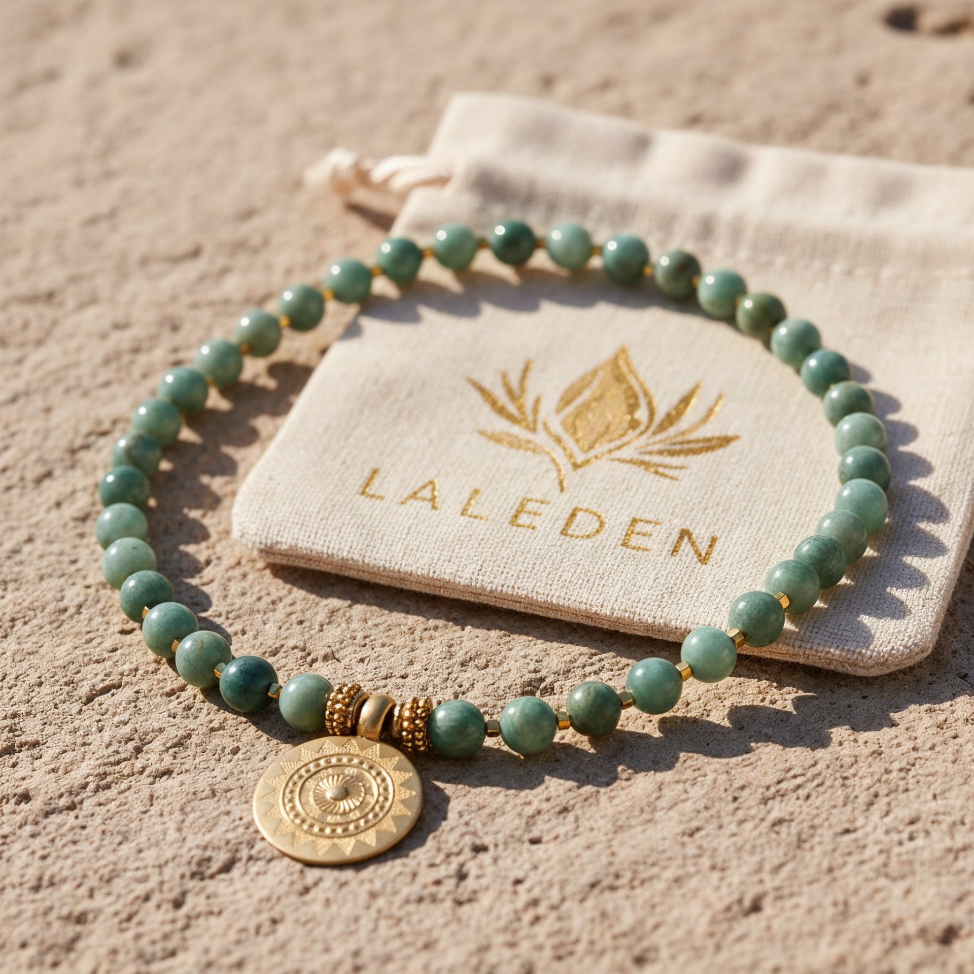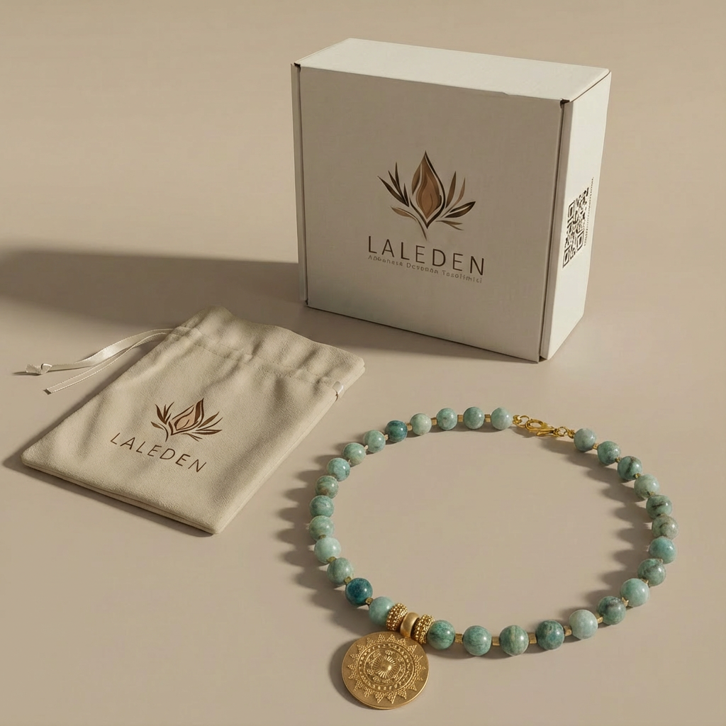 Gerçek Amazonit Güneş Mandala Kolyesi, Laleden’in Sakin Enerji & Işıklı Denge kategorisinde Ultra Premium seviyesinde yer alır.