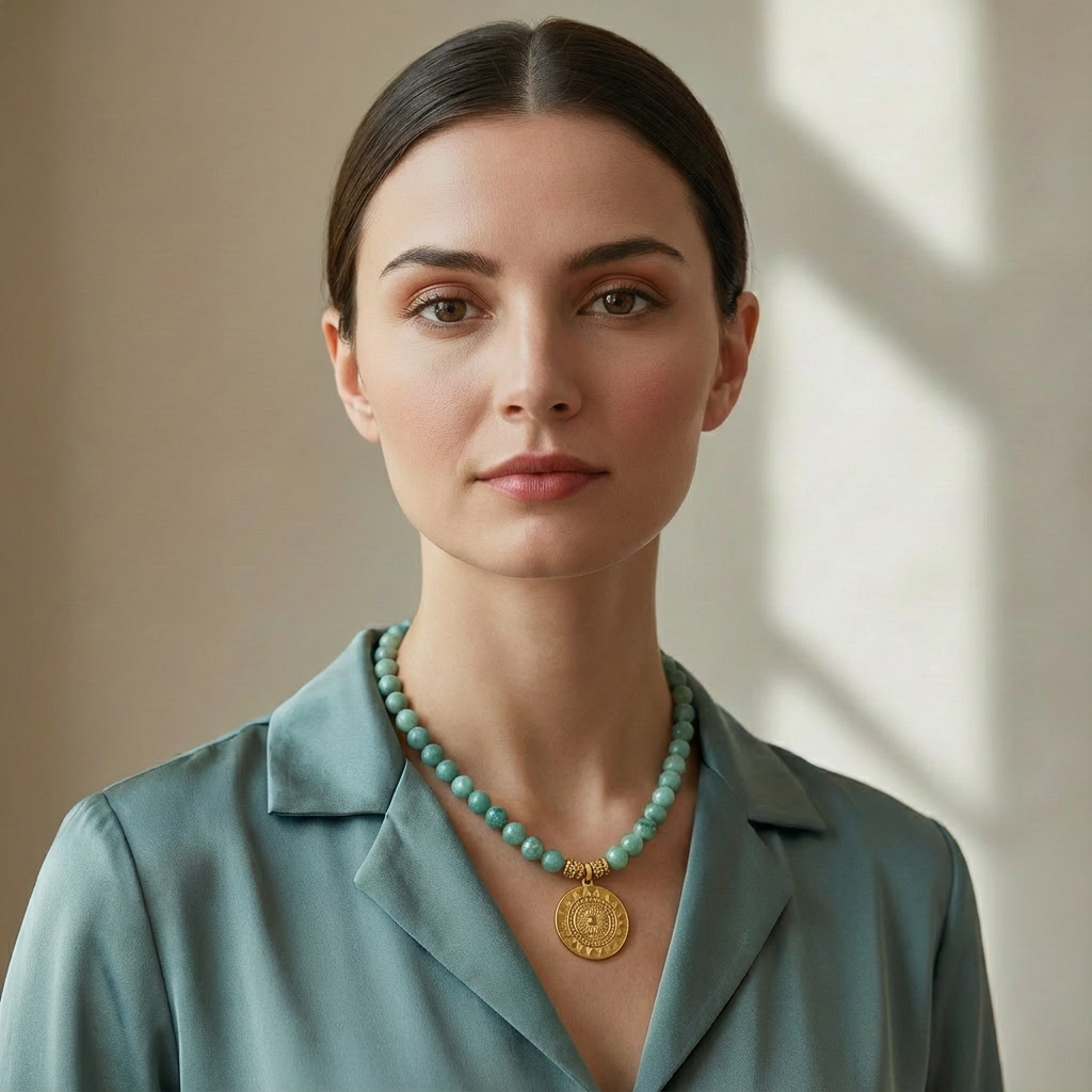 Amazonitin ferah enerjisi günlük kombinlere yumuşak bir zarafet;