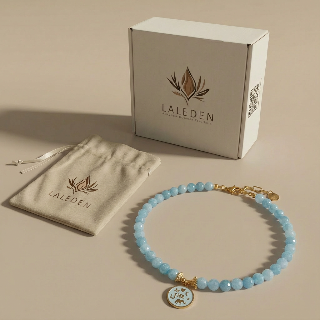 Mavi kuvarsın serin enerjisi ile şans ucu sembolünün pozitif etkisi birleşerek günlük hayata hem anlam hem de sade bir şıklık katar.