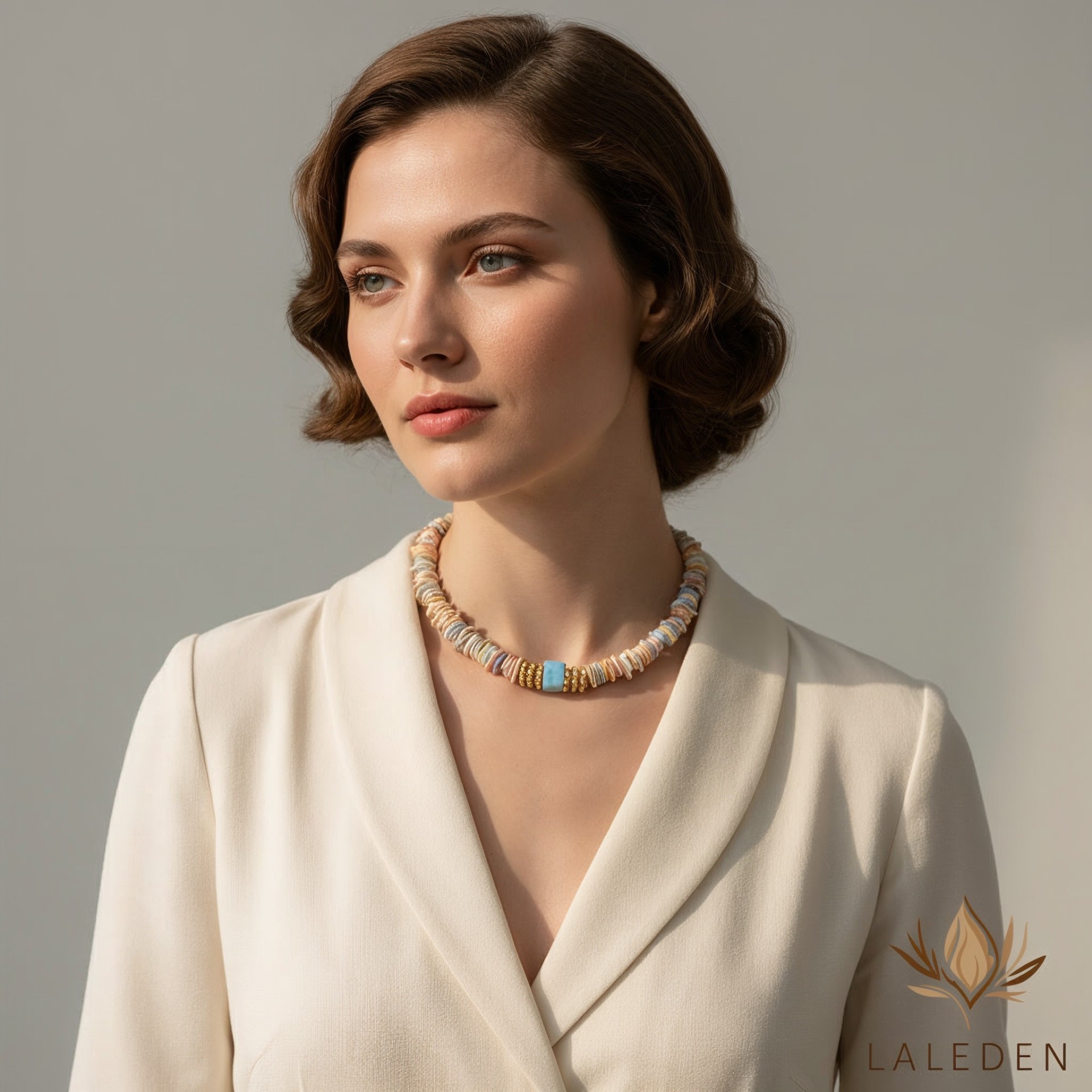 Sedefin ışığı yumuşak bir şekilde kıran zarif dokusu, kolyeye hem doğal hem modern bir görünüm kazandırır.