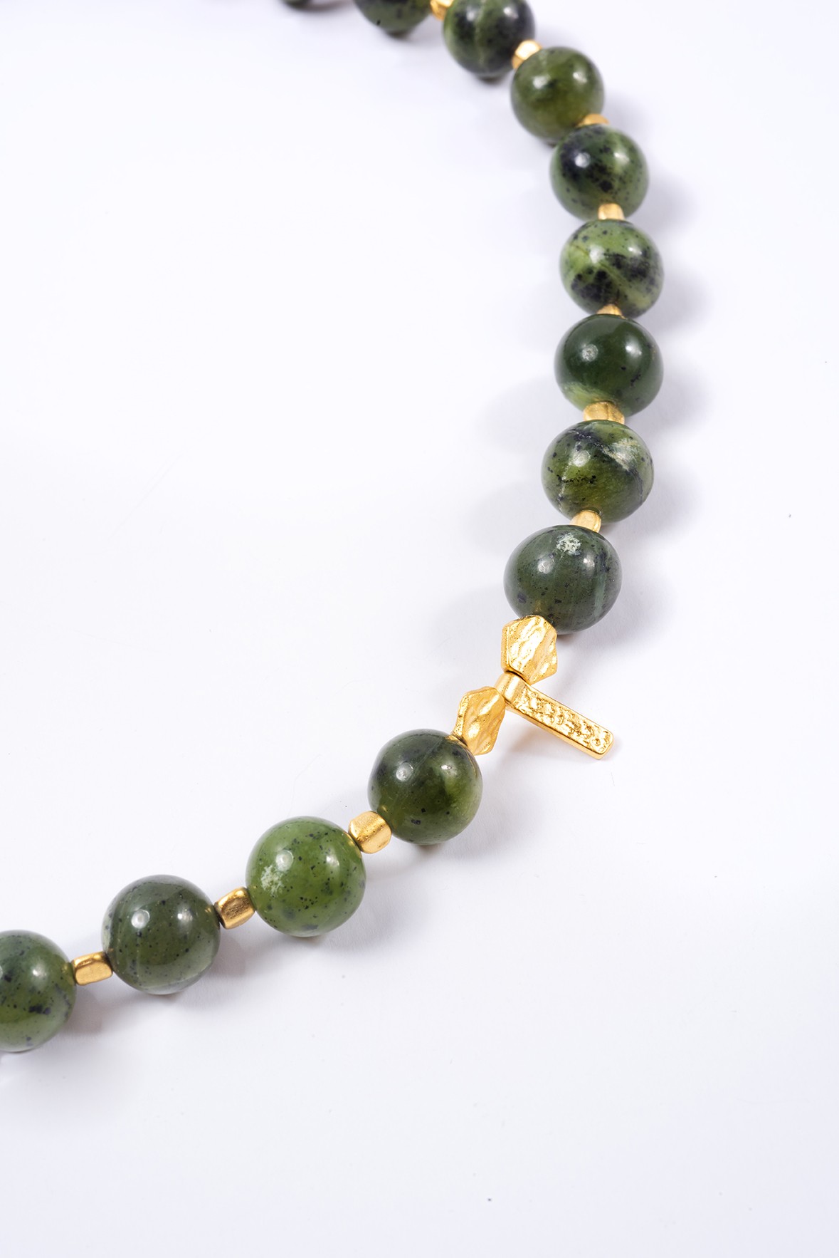 -Yeşimtaşı Bileklik – Altın Detaylı